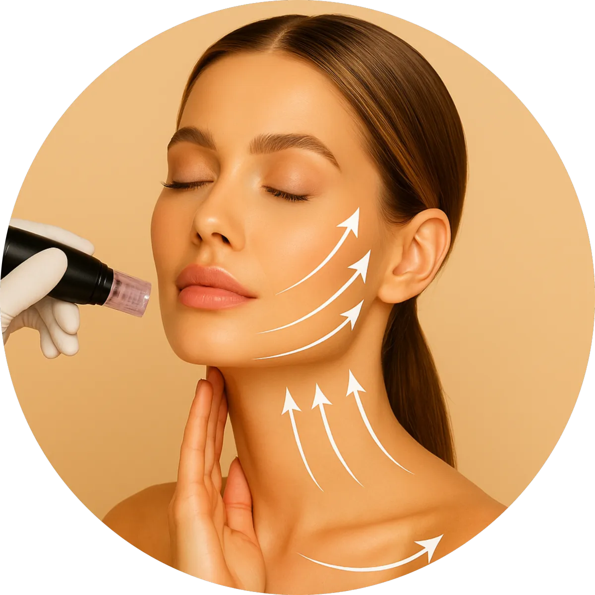 Helps tighten the look of laxity and define jawline areas